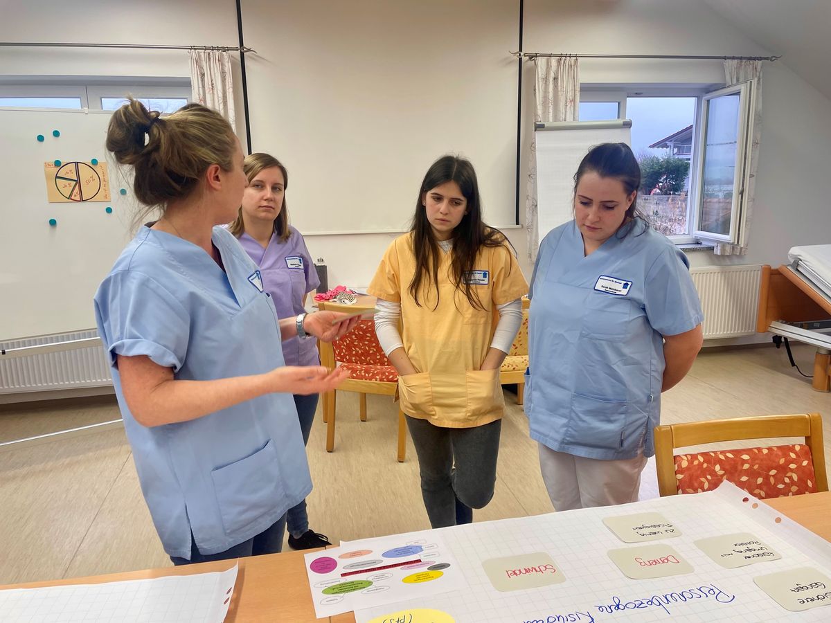 Ein wichtiger Teil deiner Ausbildung ist die Praxisanleitung. Bei uns koordinieren erfahrene Praxisanleiterinnen regelmäßige Anleitungstage, an denen du theoretische Grundlagen vertiefst und praktische Fertigkeiten direkt im Arbeitsalltag übst. Durch Reflexion, gemeinsame Übungen und konkrete Fallbeispiele wächst du sicher in deinen zukünftigen Beruf hinein.